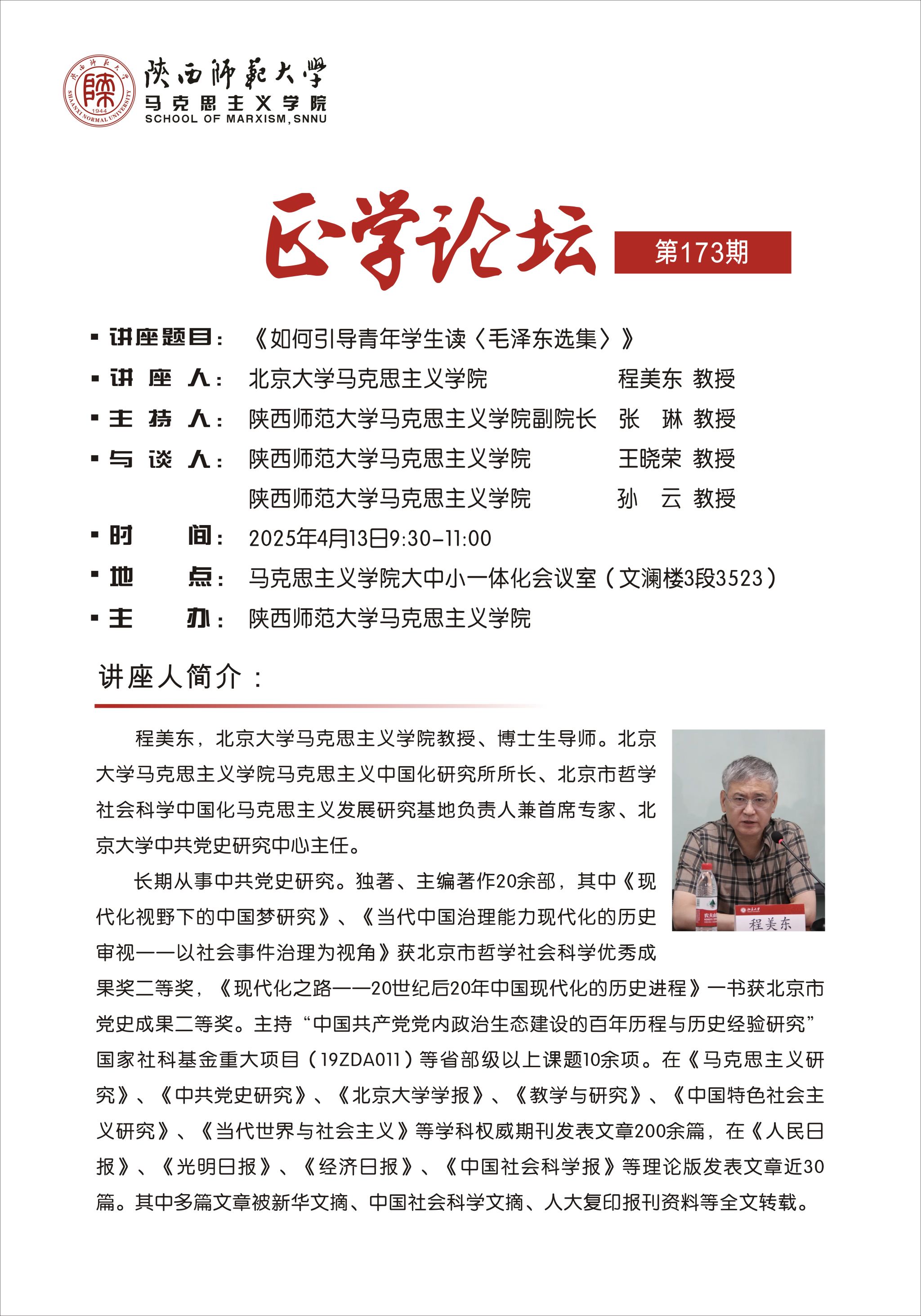 【正学论坛】第一百七十三期 程美东:如何引导青年员工读《毛泽东选集》