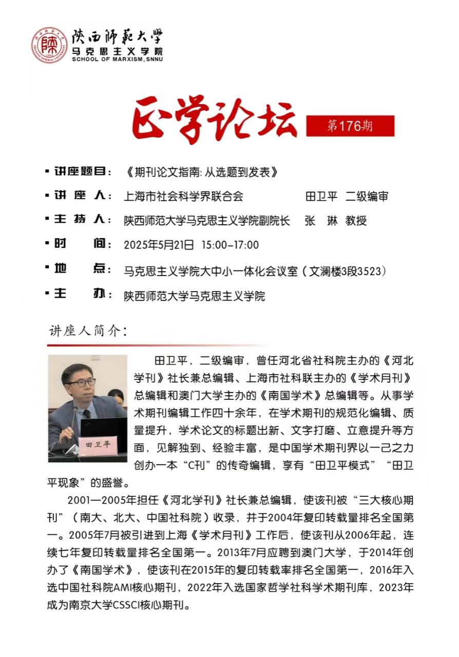 【正学论坛】第一百七十六期 田卫平:期刊论文指南:从选题到发表