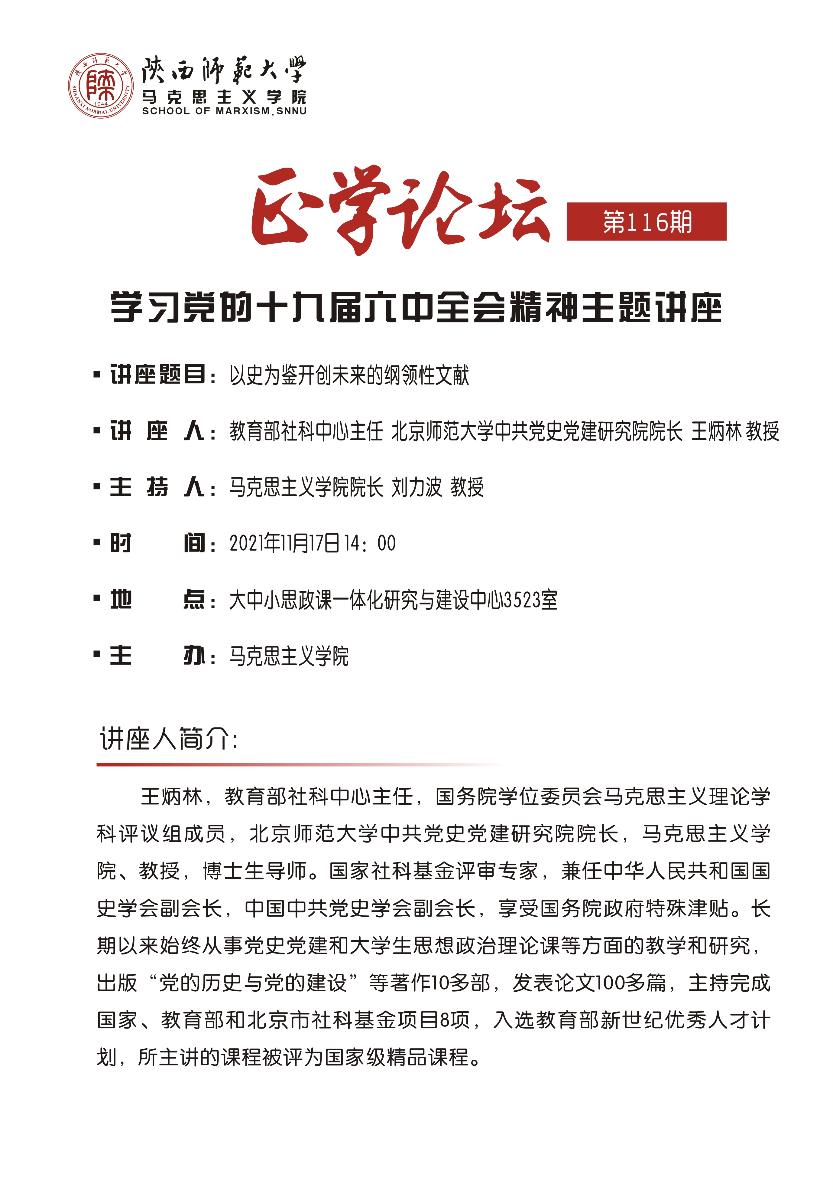 【正学论坛】第一百一十六期 王炳林:以史为鉴开创未来的纲领性文件